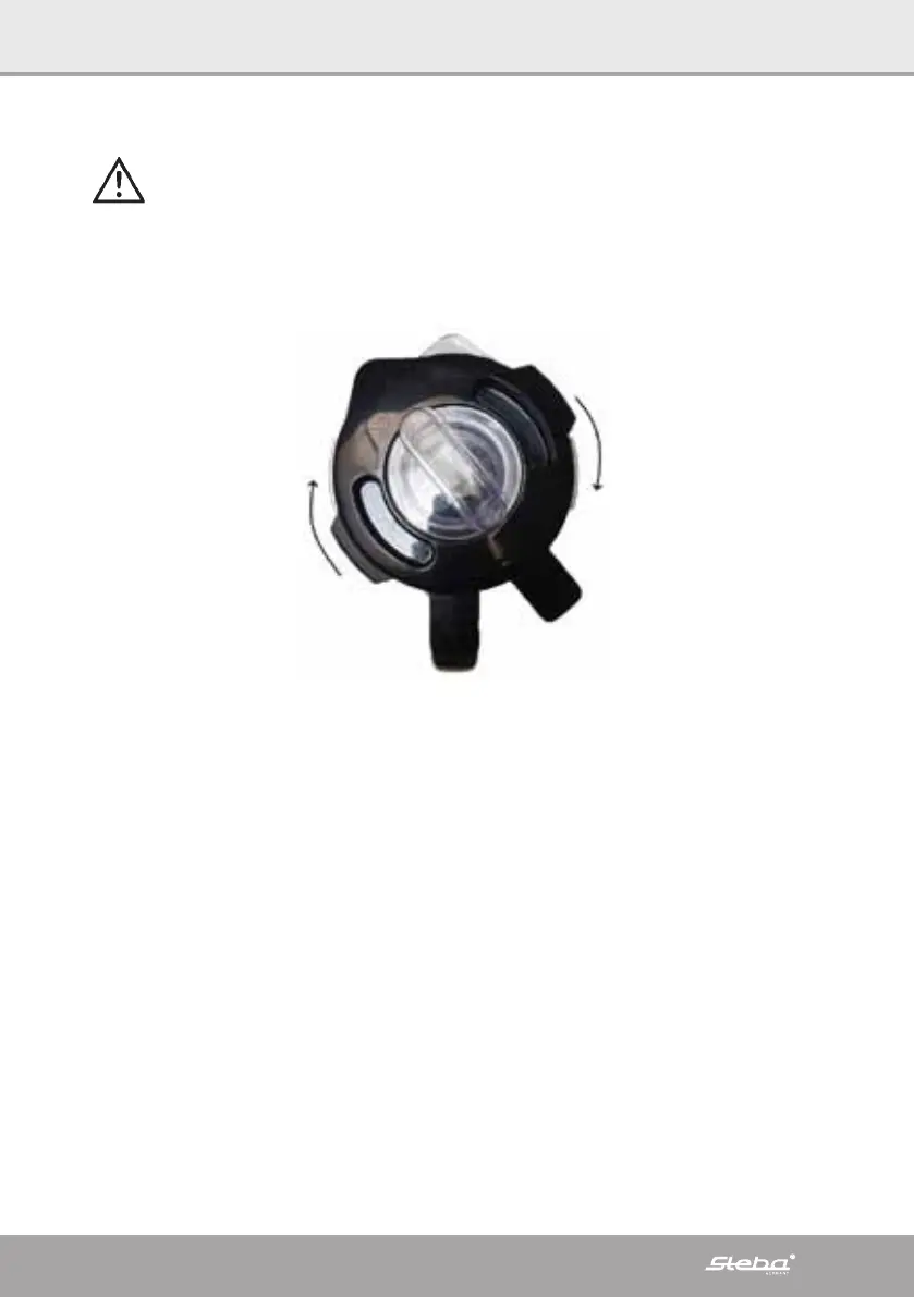 ∙ Plaats de deksel op de kan en zet hem met een draaiende beweging vast aan het