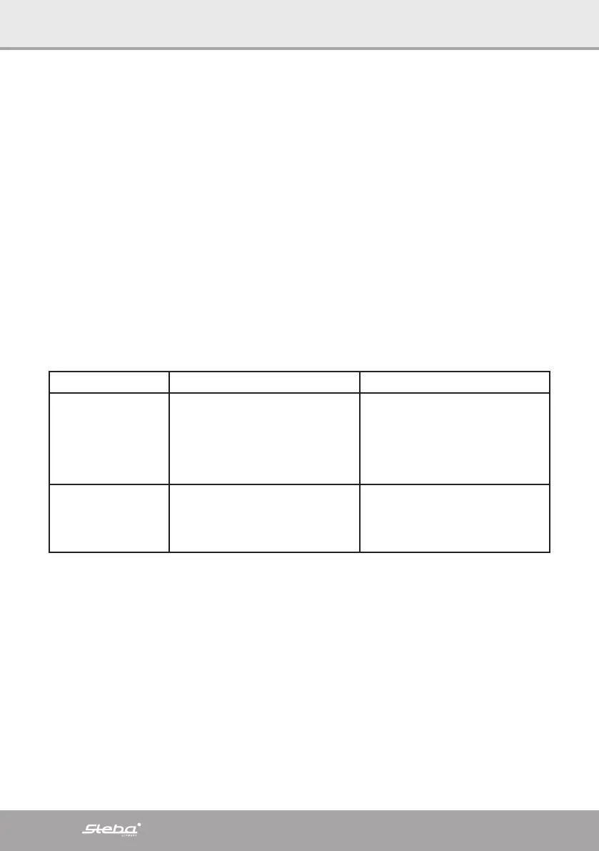 Tak fordi du købte et produkt fra Steba. Tabellen nedenfor giver hjælp til problemer,