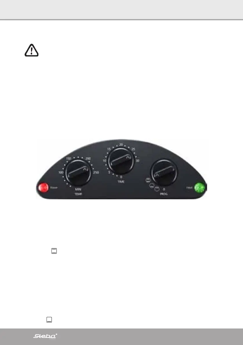 Unterhitze stellen. Die rote Lampe leuchtet, die grüne Thermostat Lampe taktet.