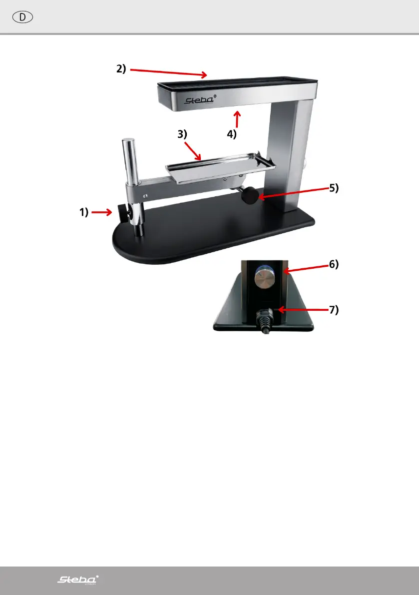 5) Griff am Schwenkarm zum Kippen der Auflage