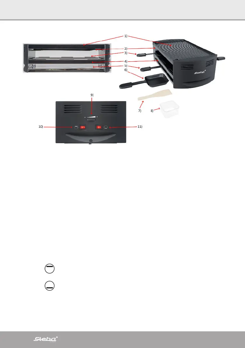 Chaleur supérieure : Raclette classique sur la plaque de cuisson et gra-