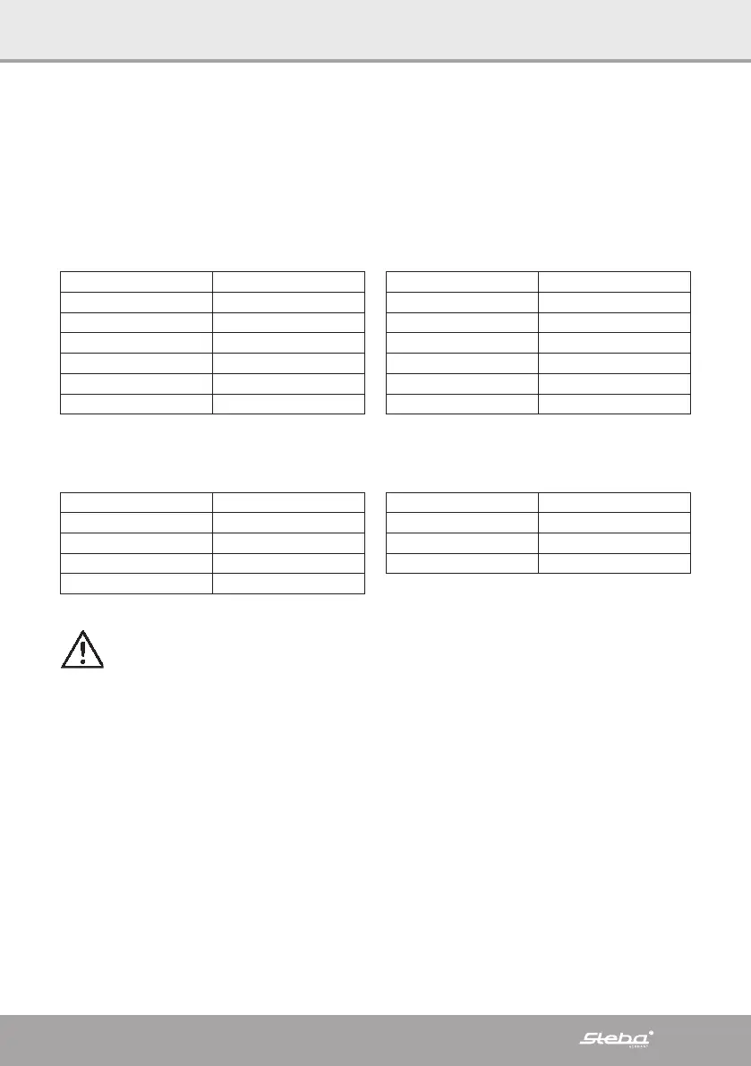 kommenderade minimumtider när apparaten redan är fylld med varmt (lednings)