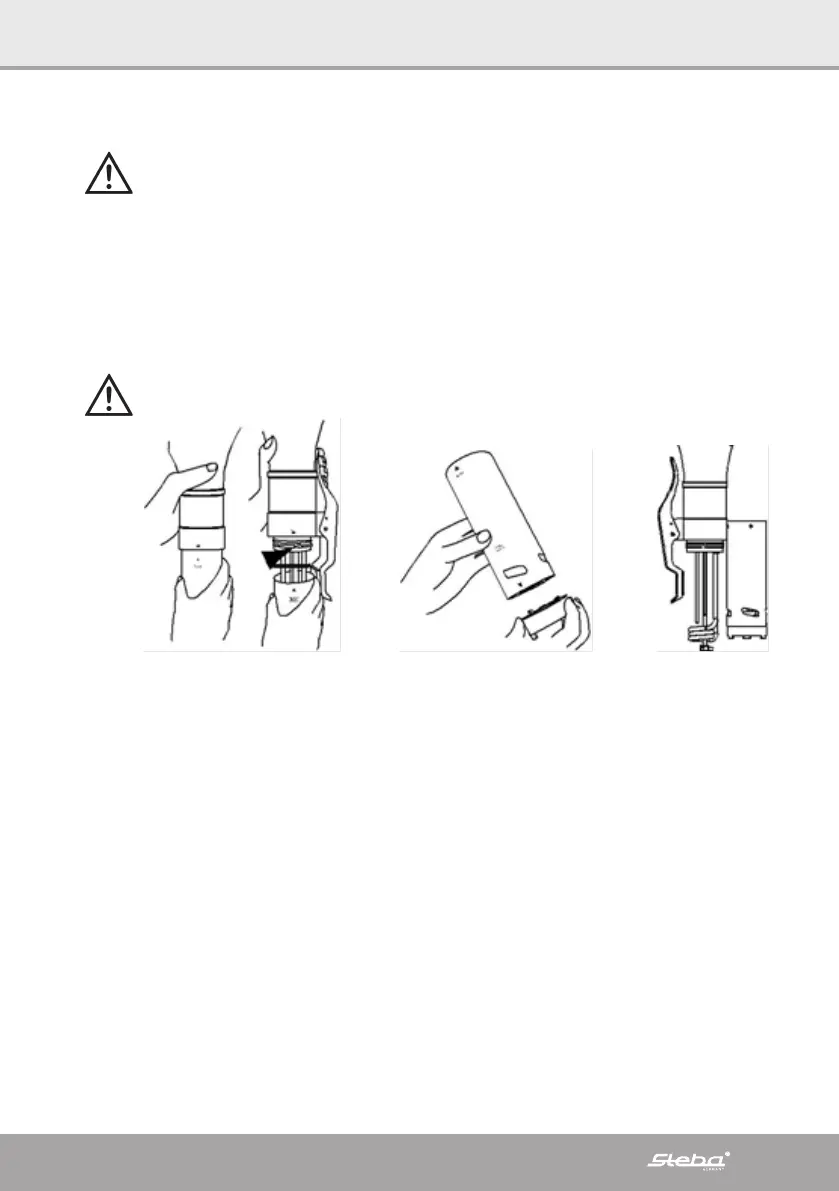 o Placera apparaten i en behållare. Fyll på med vatten upp