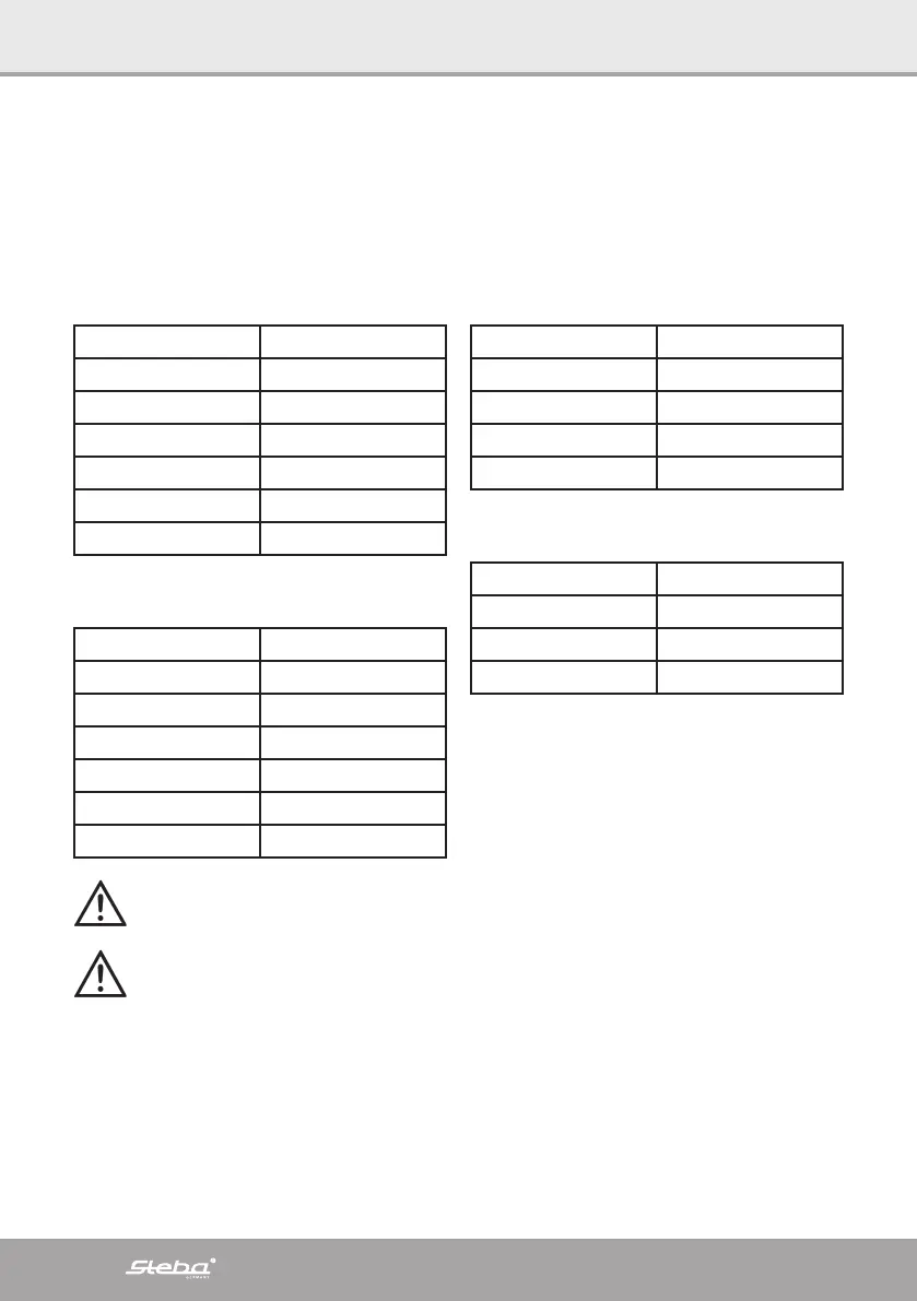 De temperaturer som rekommenderas i tidstabellen för matlagning bör inte