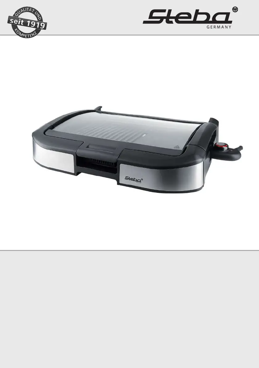 If fat is running onto the table from your Steba Grill, it's likely due to a problem with the collector tray. This could be because the collector tray is not correctly inserted, the collector tray was not inserted at all, or the collector tray is full. To resolve this, empty the tray, reinsert it, and ensure it is correctly placed.