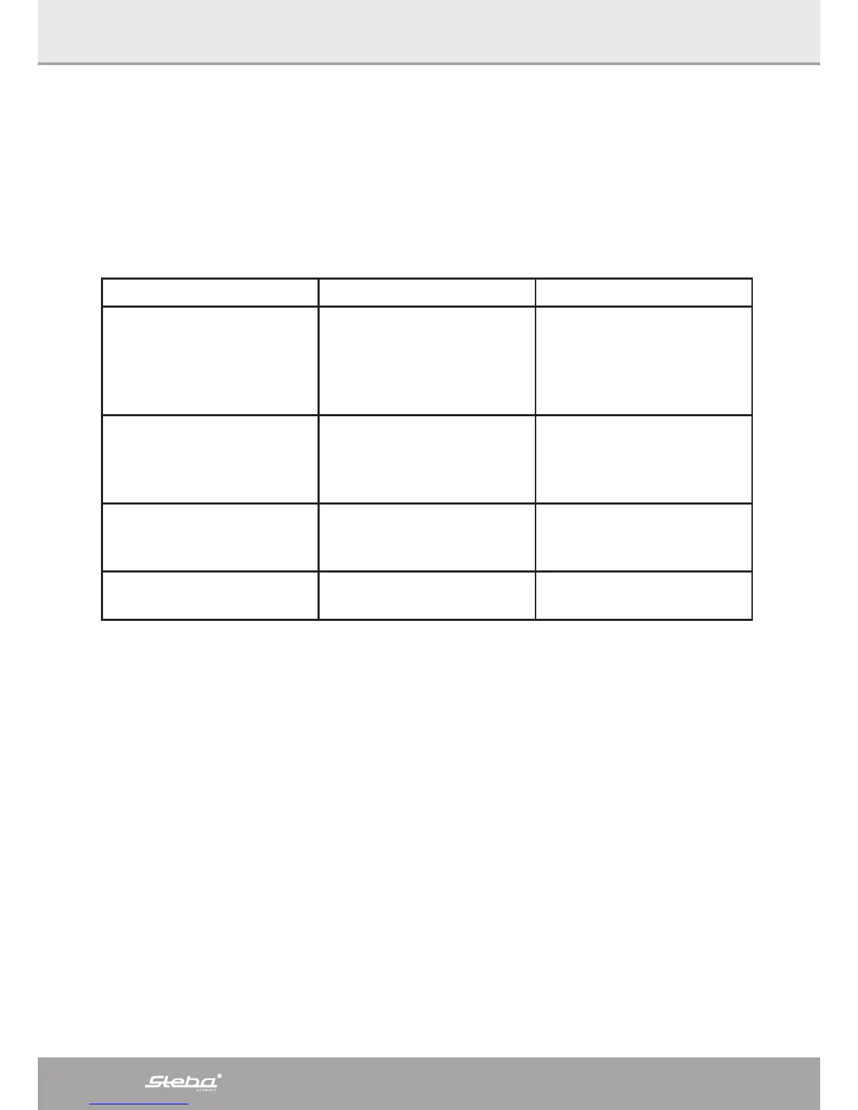 vielen Dank für den Kauf eines STEBA-Produktes. Nachfolgende Tabelle gibt Ihnen
