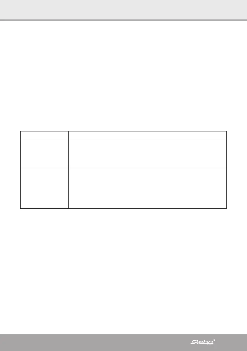 Thank you for buying this STEBA product. The following table will help you with