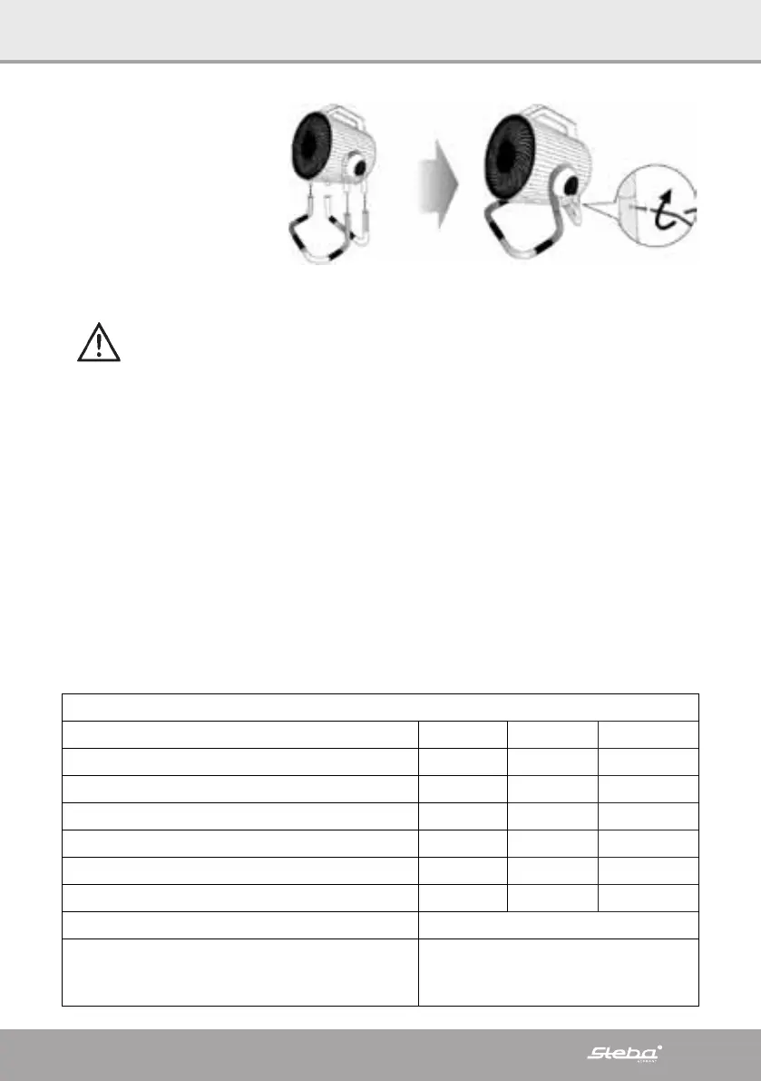 L’appareil a 3 vitesses d’air „O - 1 - 2 - 3“ et peut être pivoté de 90°.