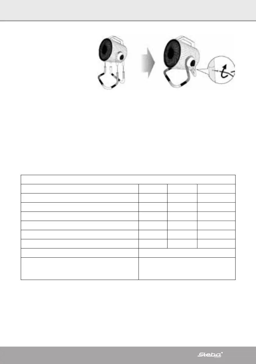 The device has 3 air speeds „O - 1 - 2 - 3“ and can be swivelled by 90°.