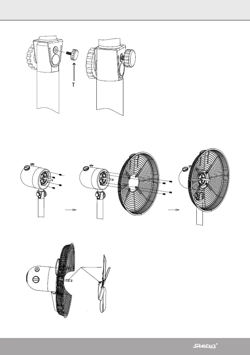 Sæt vingerne på. Tommelfingerskruen skal fastgøres i aksen fladt. Motorakslen må