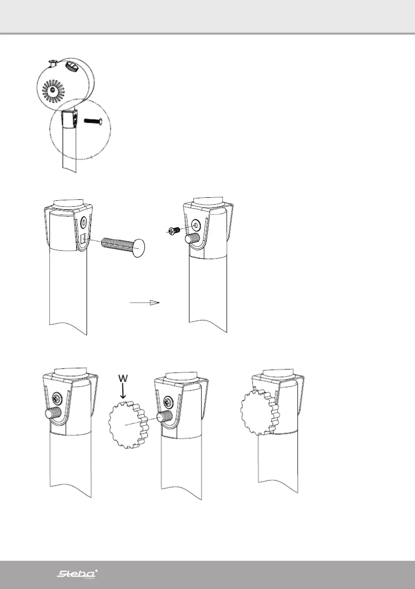 Vissez l’écrou moleté W pour le montage du moteur.