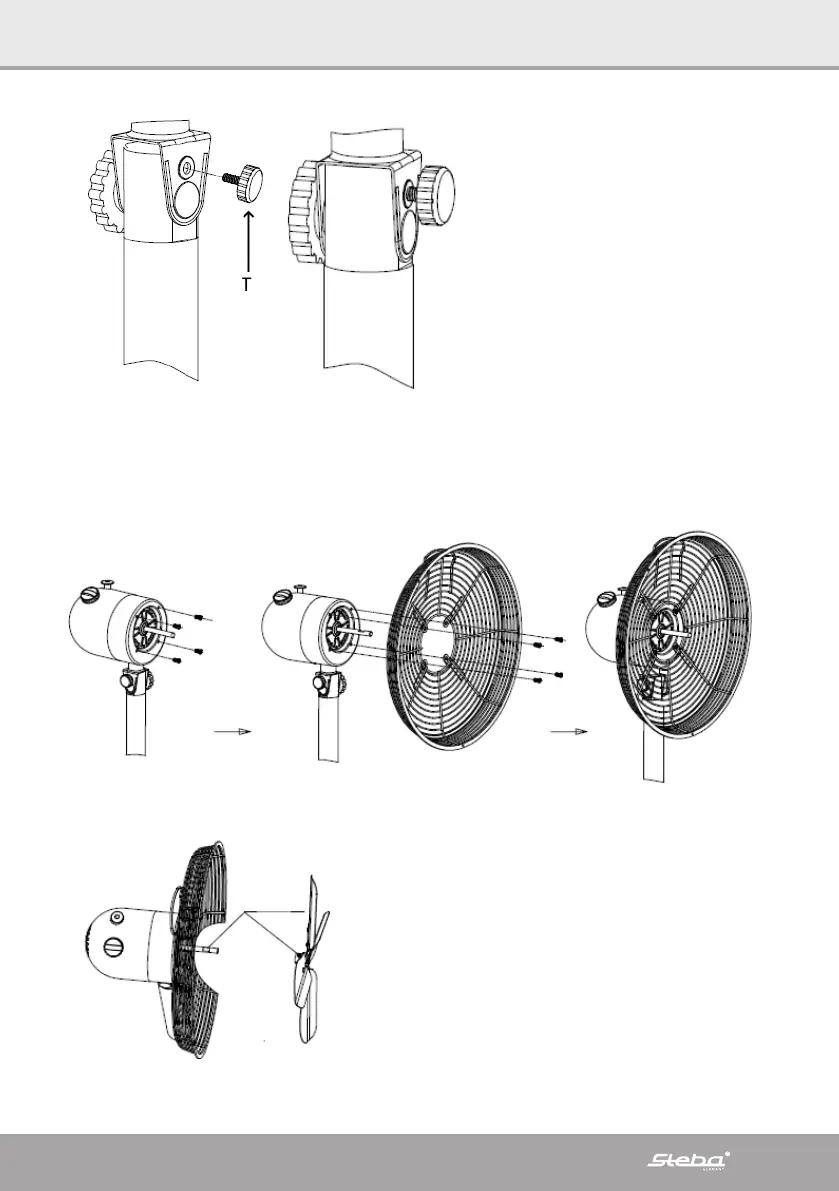 Enfichez les pales du rotor. La vis à oreilles doit se fixer dans le tassement de l’essieu.