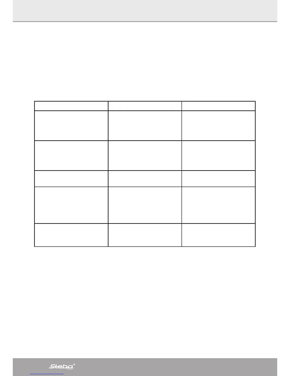 Merci d’avoir acheté un produit STEBA de qualité. Le tableau ci-dessous donne une