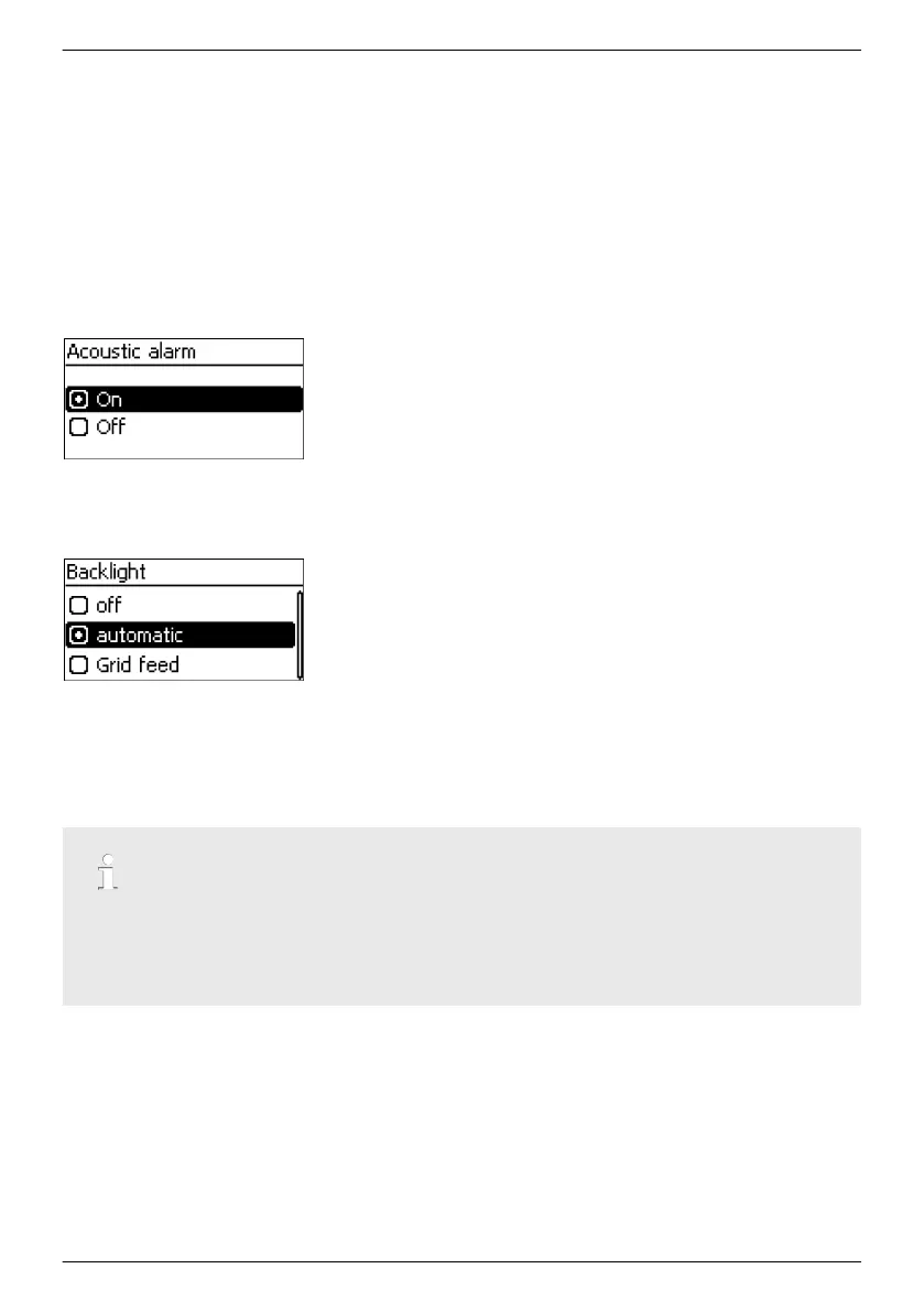 The acoustic alarm is switched off with the factory default settings.