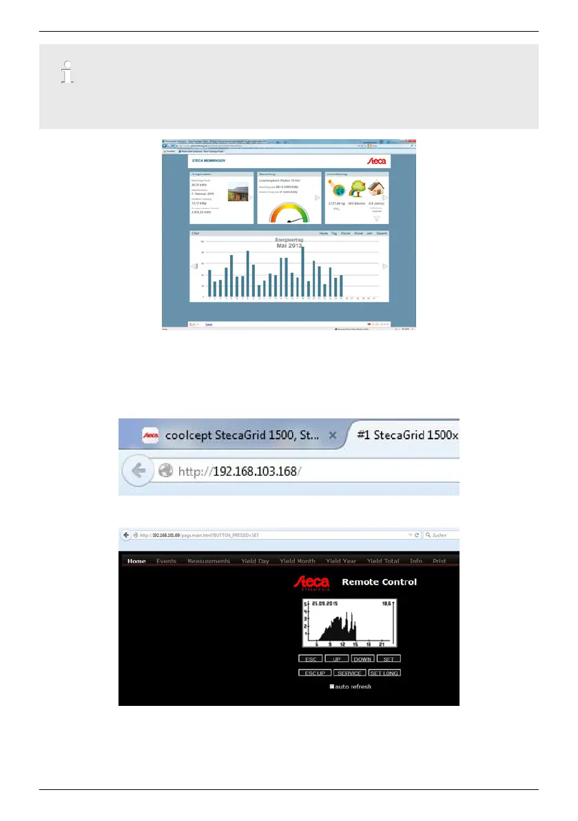 Furthermore, you can use the TCP/IP interface to display yield data and other information as HTML