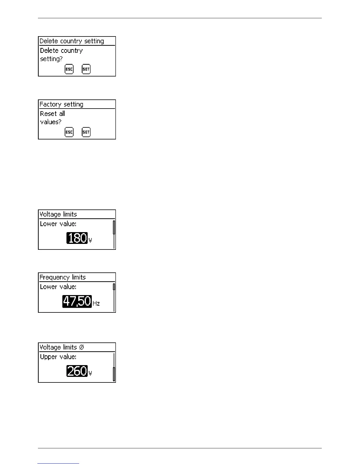 The following voltage limits can be changed: