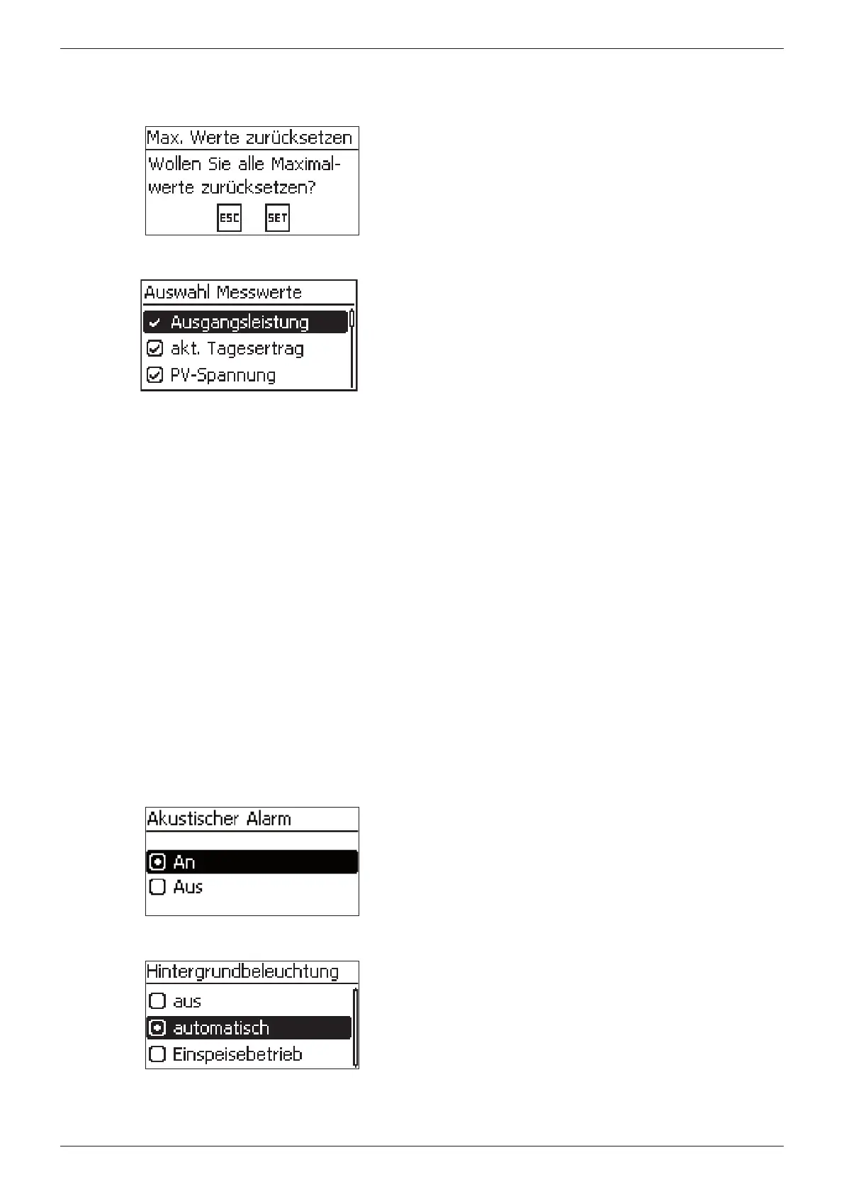 werden können. Folgende Messwerte können ausgewählt