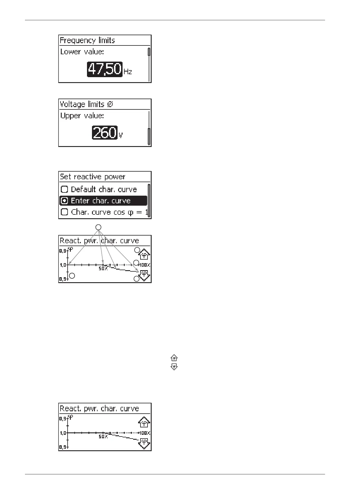 Char. curve cos φ = 1: pre-defined with cos φ = con-