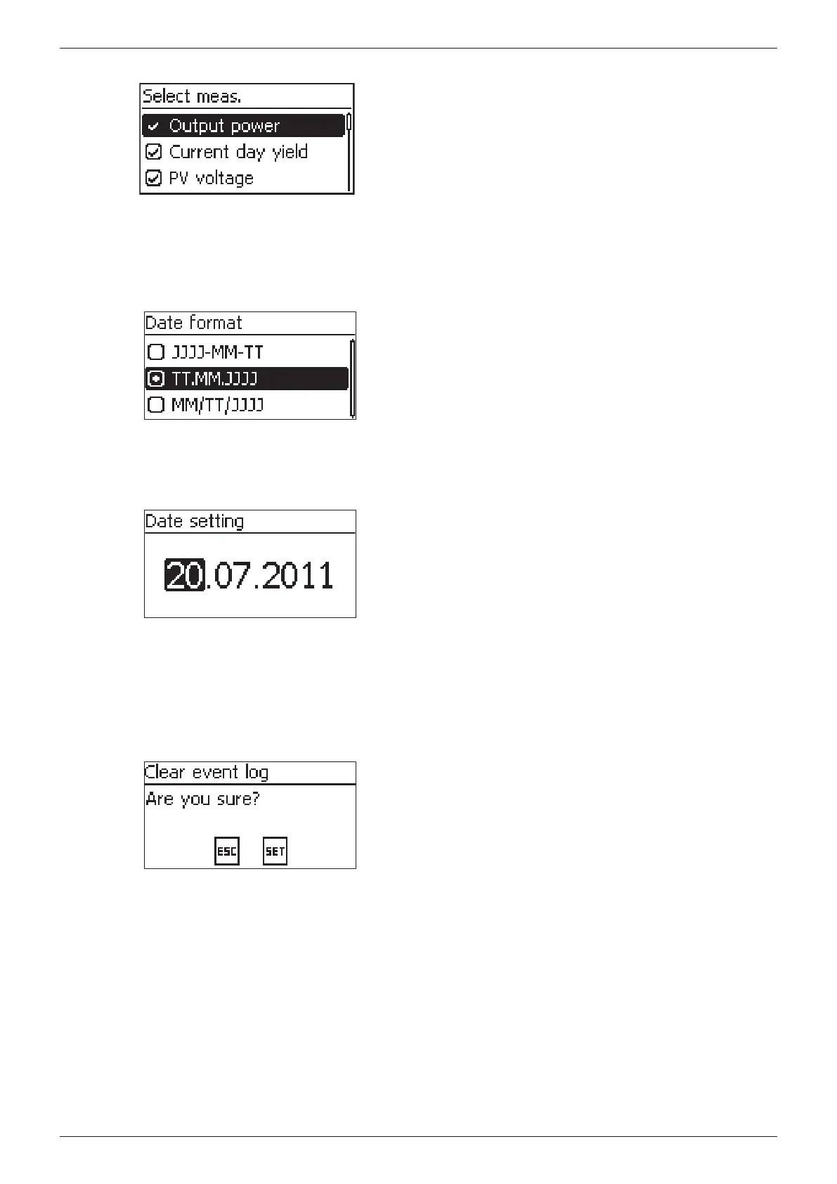 1. Press SET. The selected value flashes (Day in Fig. left).