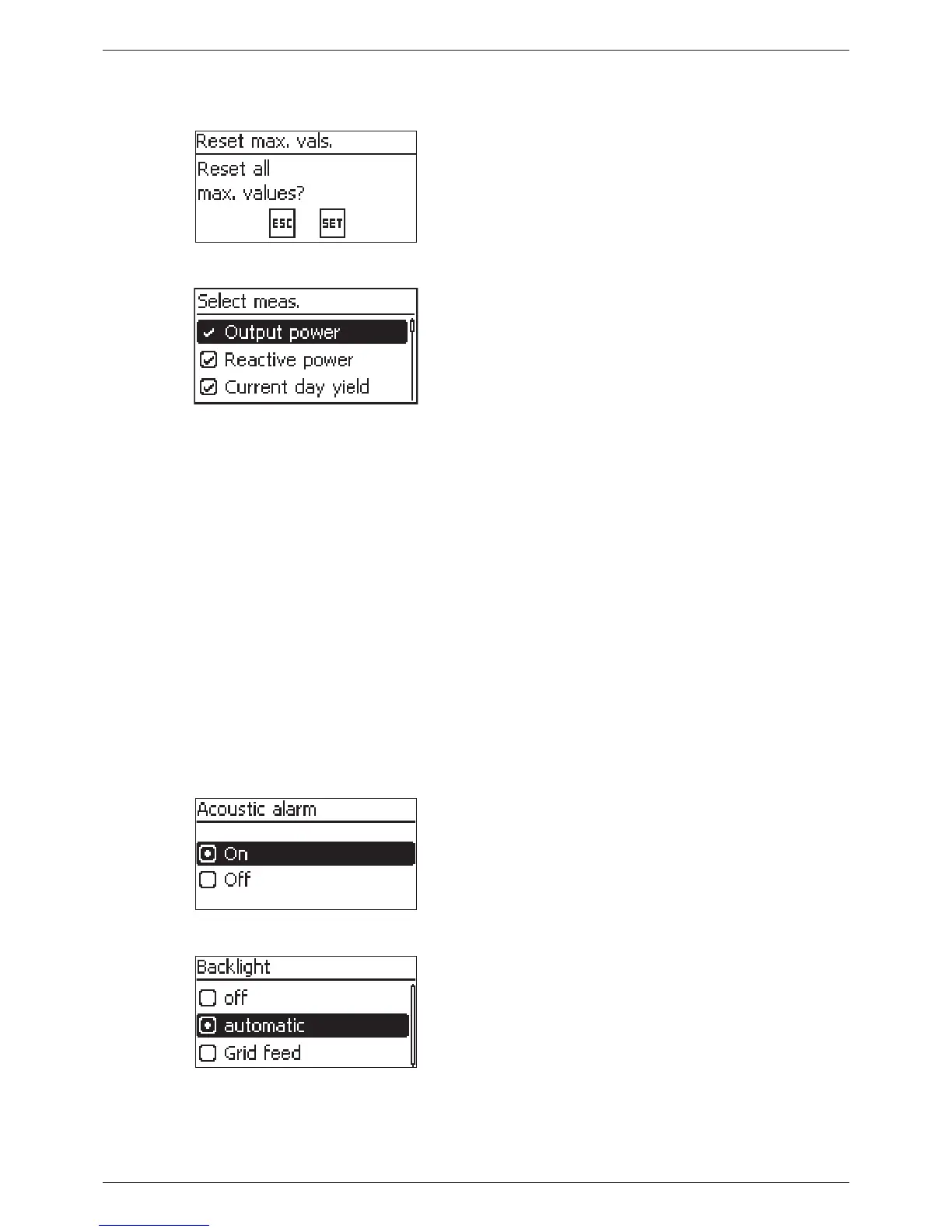 display. The following measurements can be selected: