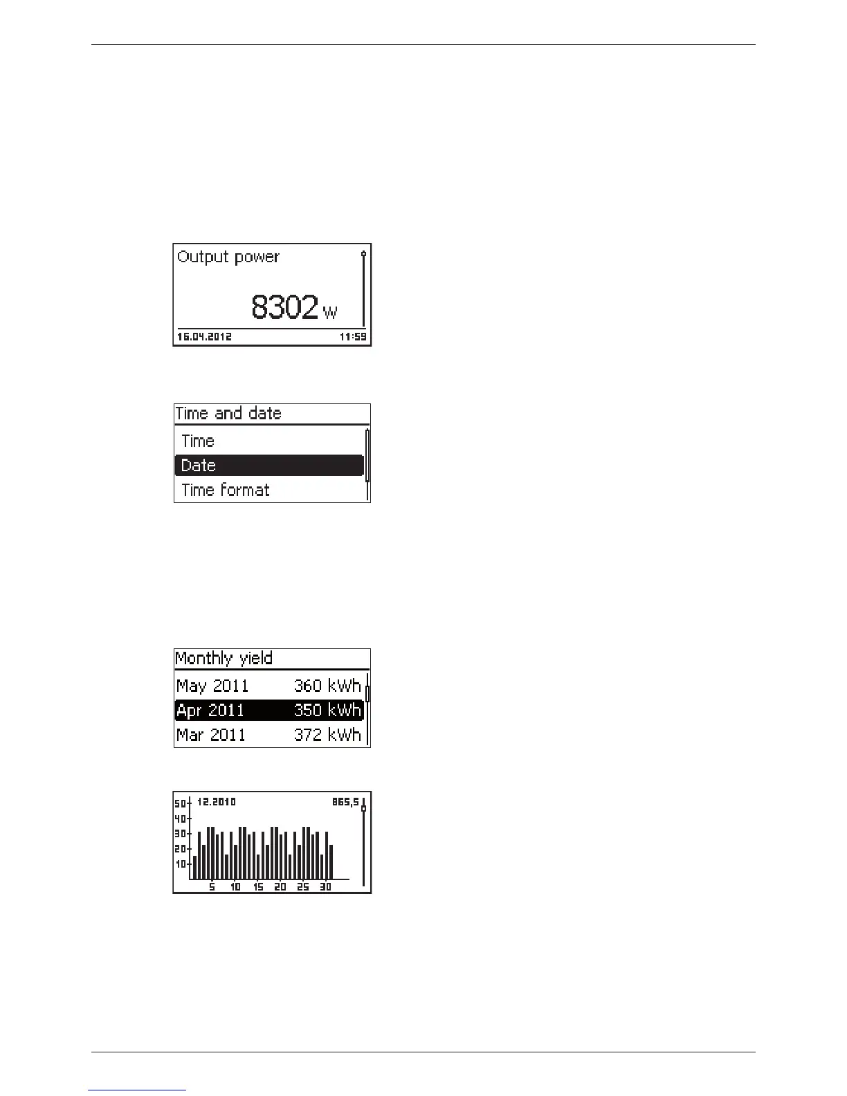 2. Press SET. The list with yield time periods is shown.