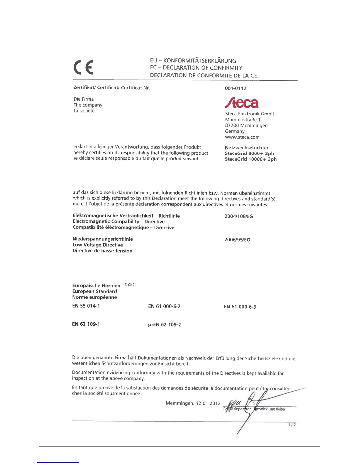 Zertifikate – Certificates – Certificats
