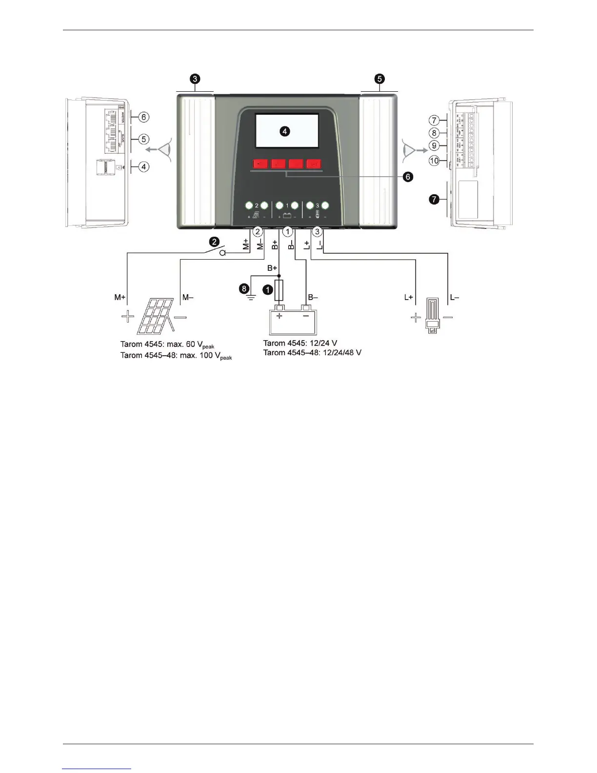 Batteryconnection:terminals1+and1−