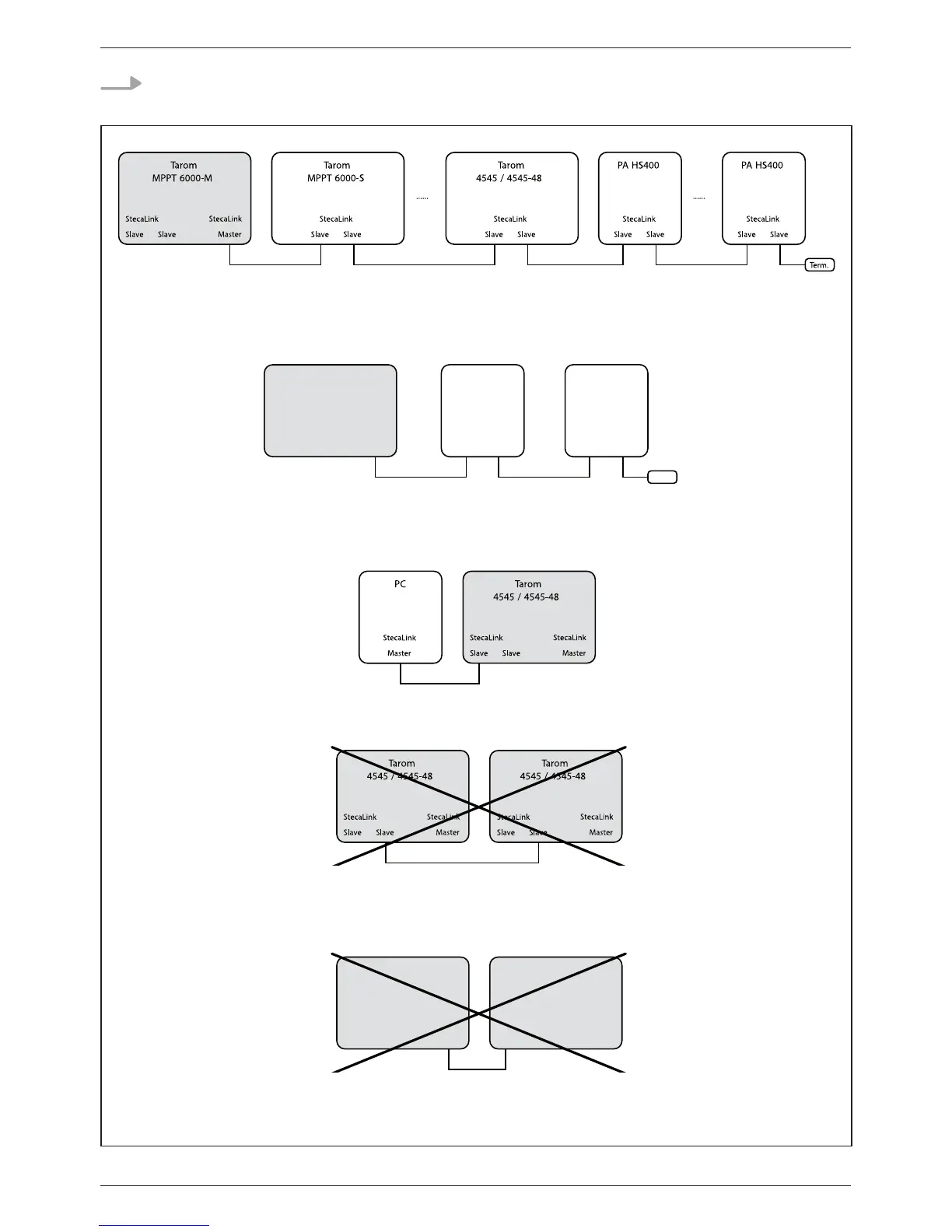 slave connections, other charge controllers or PA HS400 without master is not permitted