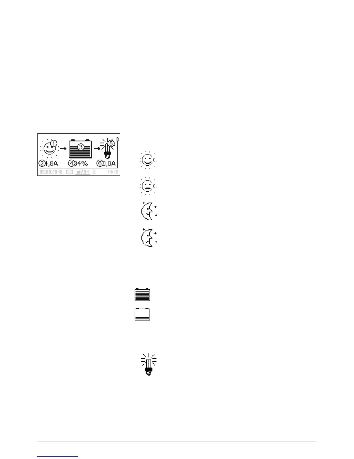The Solar module/system symbol shows the status of the