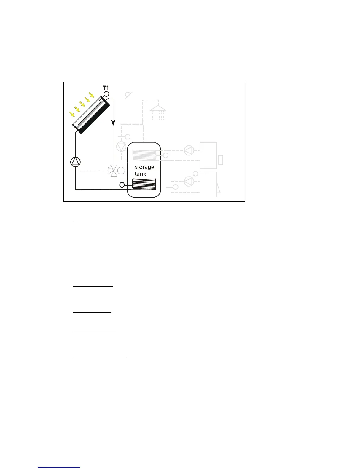maintains the differential temperature between 'collector' (T1) and ‘lower part of the storage tank'