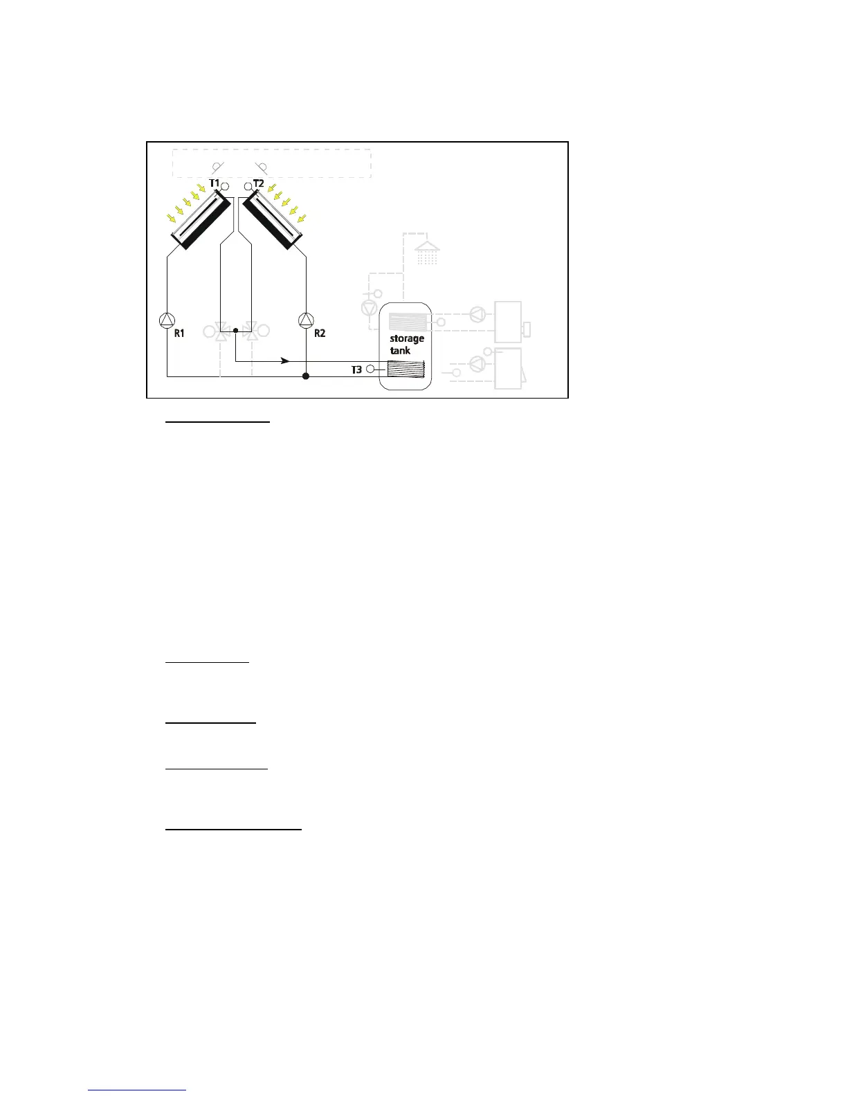sensors T1 and T3 or T2 and T3. Depending on for which collector array the switch-on differential