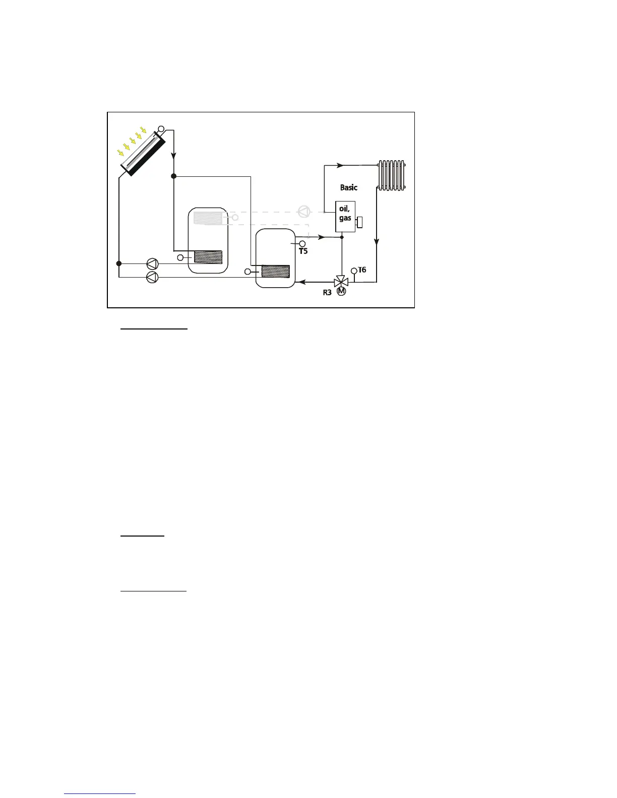 Supplementary heating is provided by the 3 way valve R3 and the sensors T4 and T5. If the