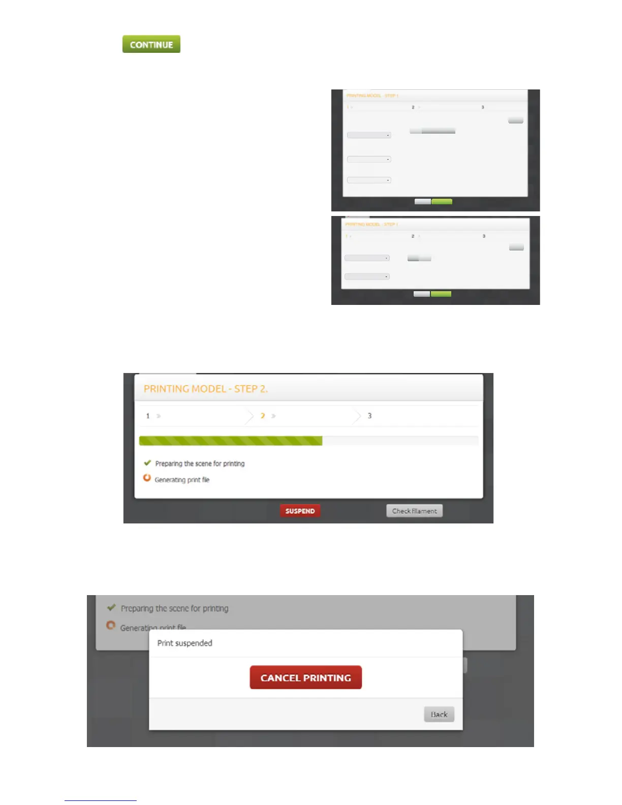 this process you can select the ‘SUSPEND’ buon and you will be asked if you wish to cancel the print: