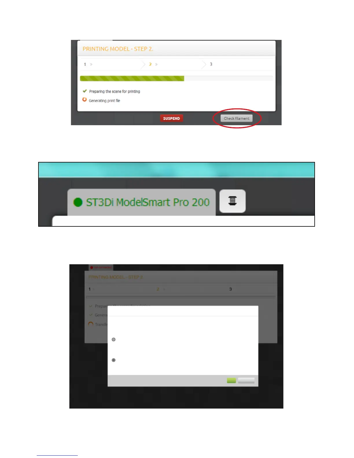Checking lament levels on other operang systems can be done via the Filament buon which will appear on the