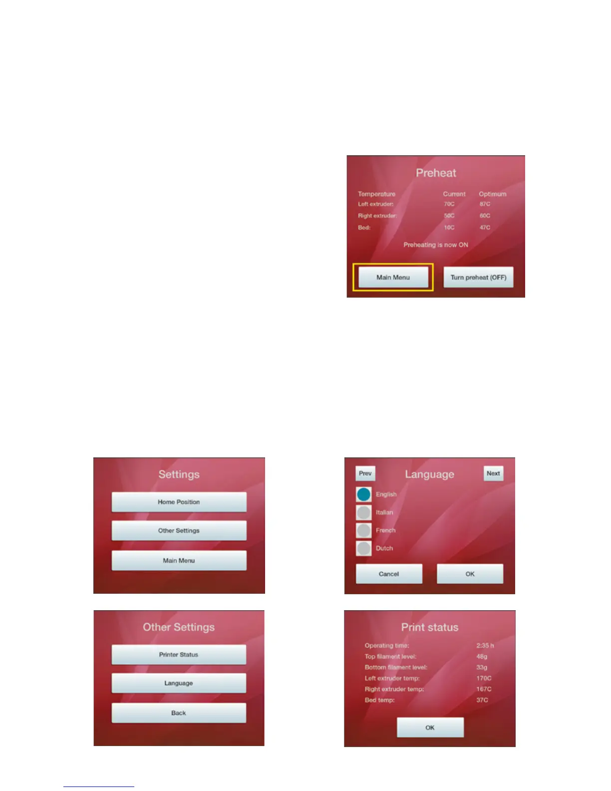 The Preheat funconality allows you to warm up the extruder(s) and print bed prior to starng the prinng process.