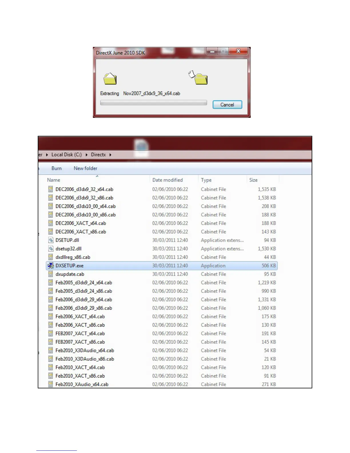 Once all the les are extracted, click on the DXSETUP.exe le to begin installaon.