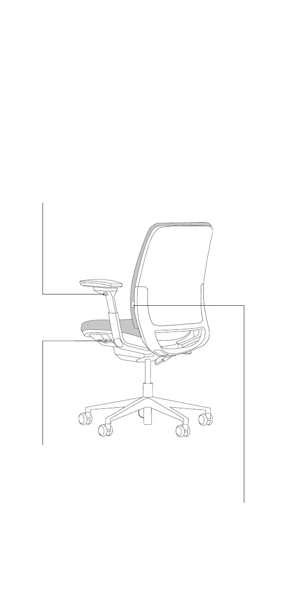 Steelcase Amia - Armrest Width, Pivot, and Depth Adjustment (Option); Seat Depth Adjustment; Seat Depth; Backrest and Lumbar Support