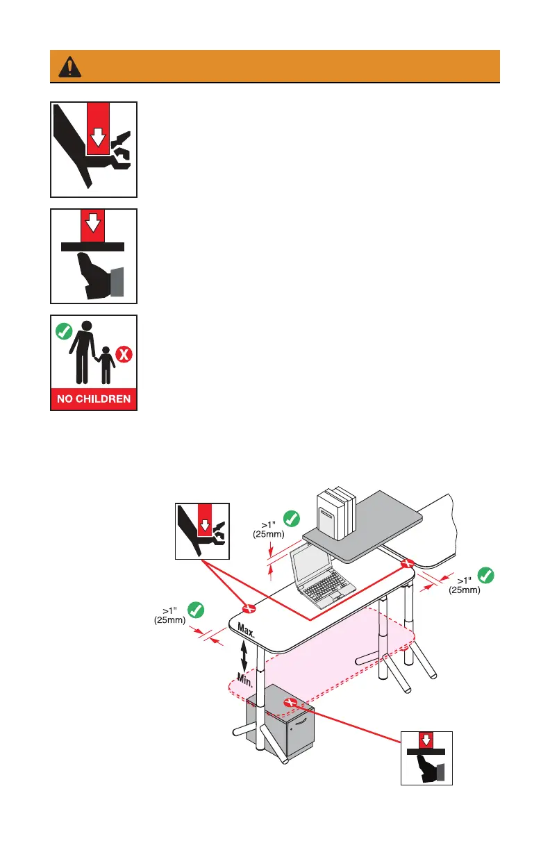 Raising or lowering desk can trap or crush body parts.