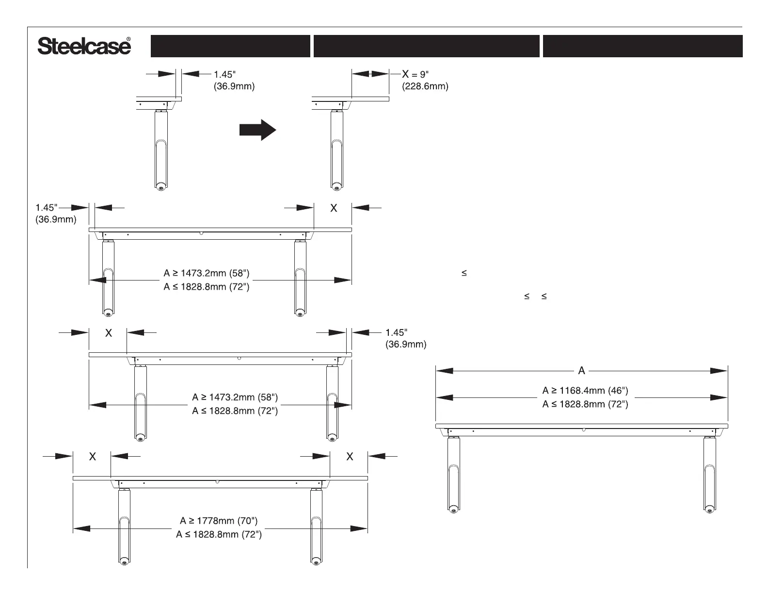 1473.2mm (58") A 1828.8mm (72") : X = 228.6mm (9")