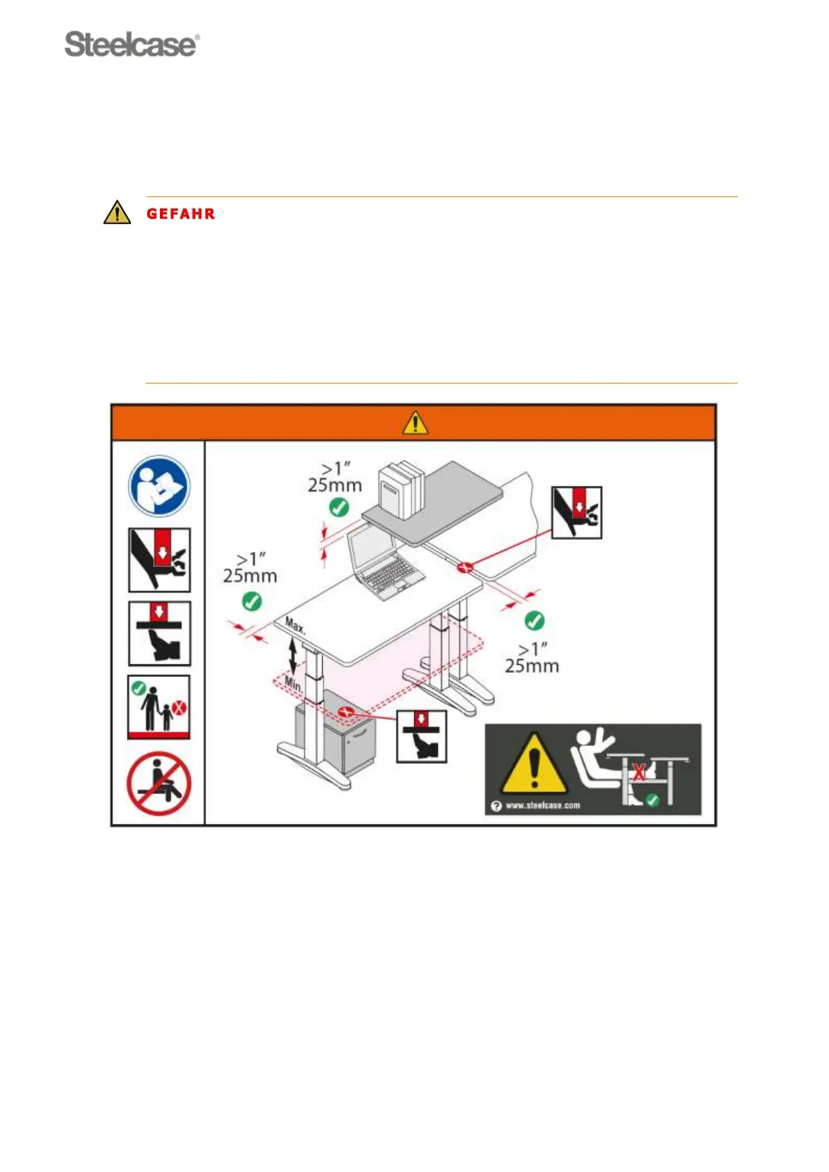 Während der elektrischen Höhenverstellung können Körperteile oder Gegenstände