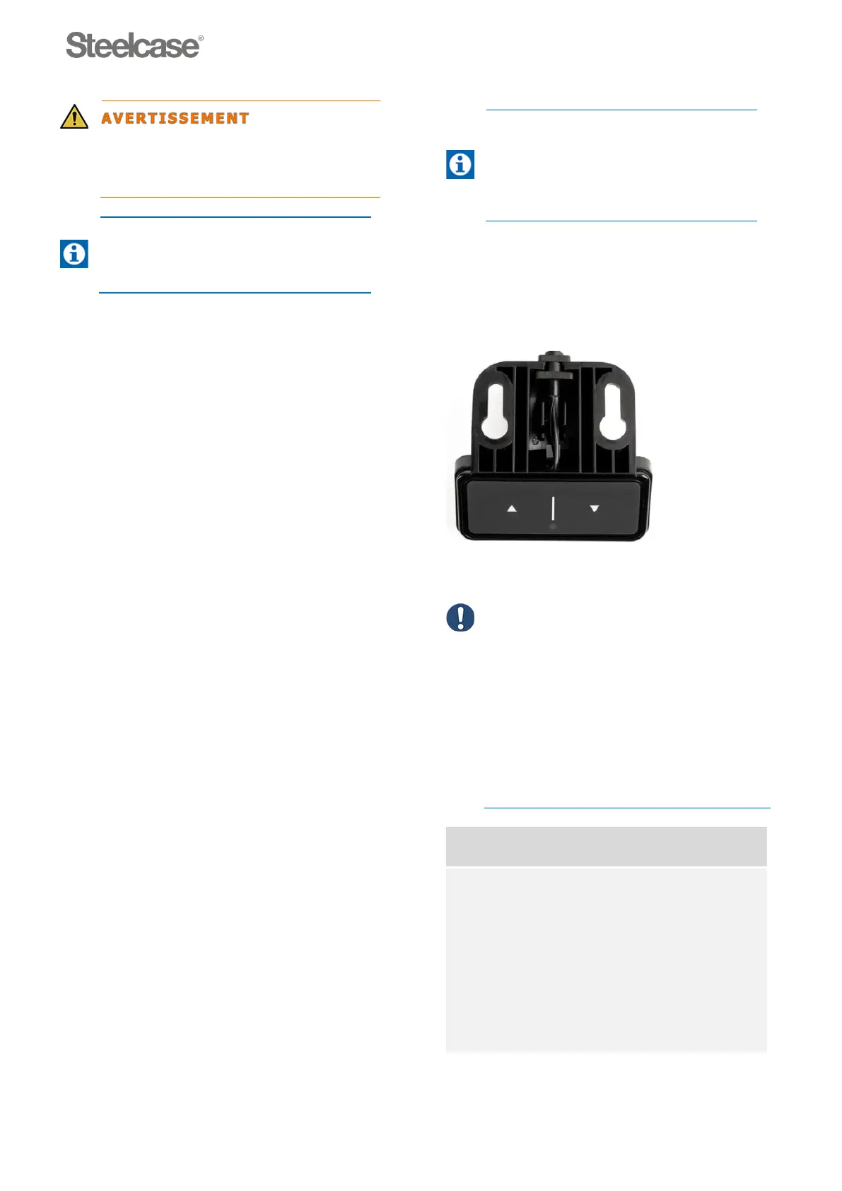 Pour régler la hauteur souhaitée du bureau,