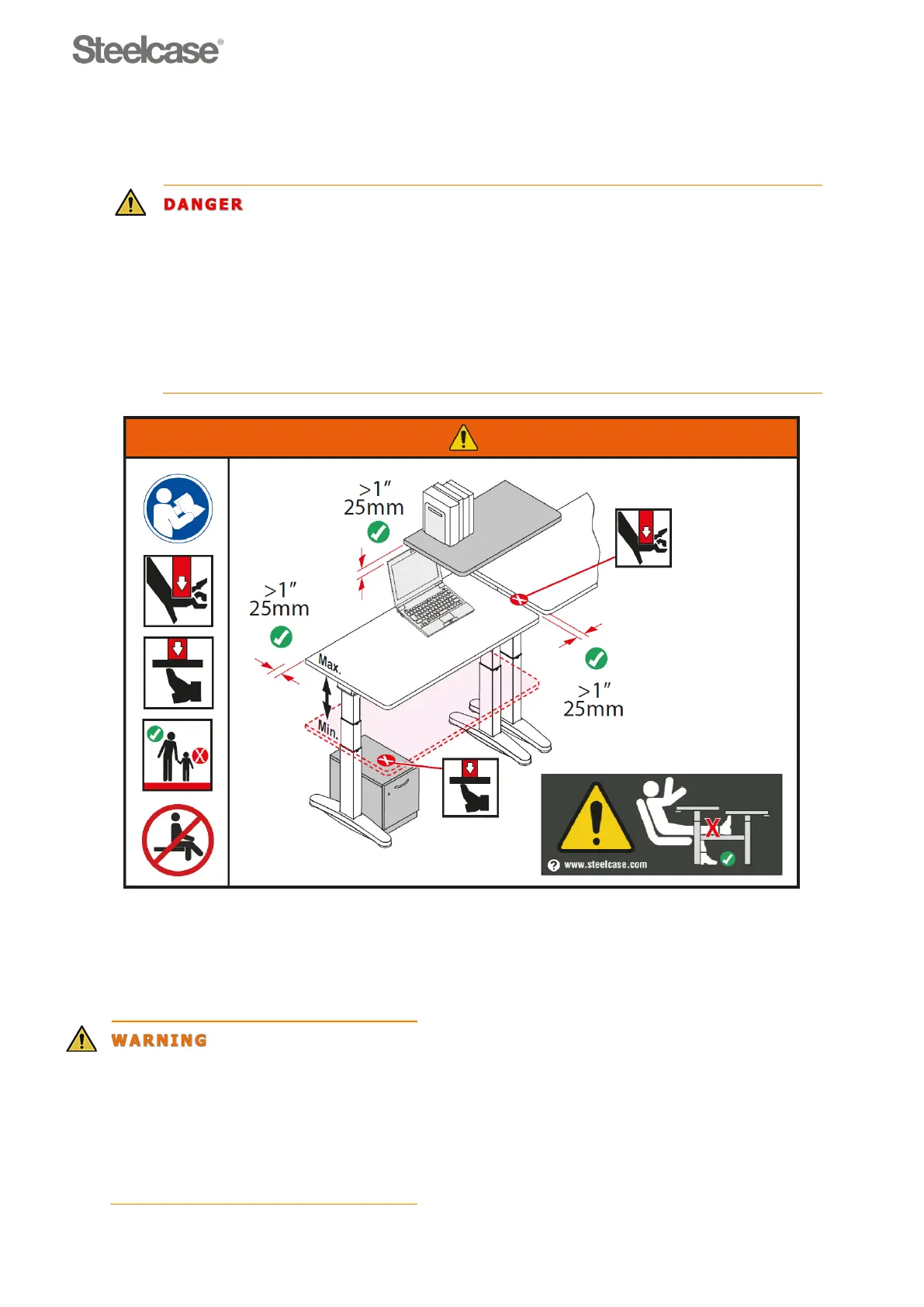 Set up the desk in such a manner that there is sufficient space for lift movements and for