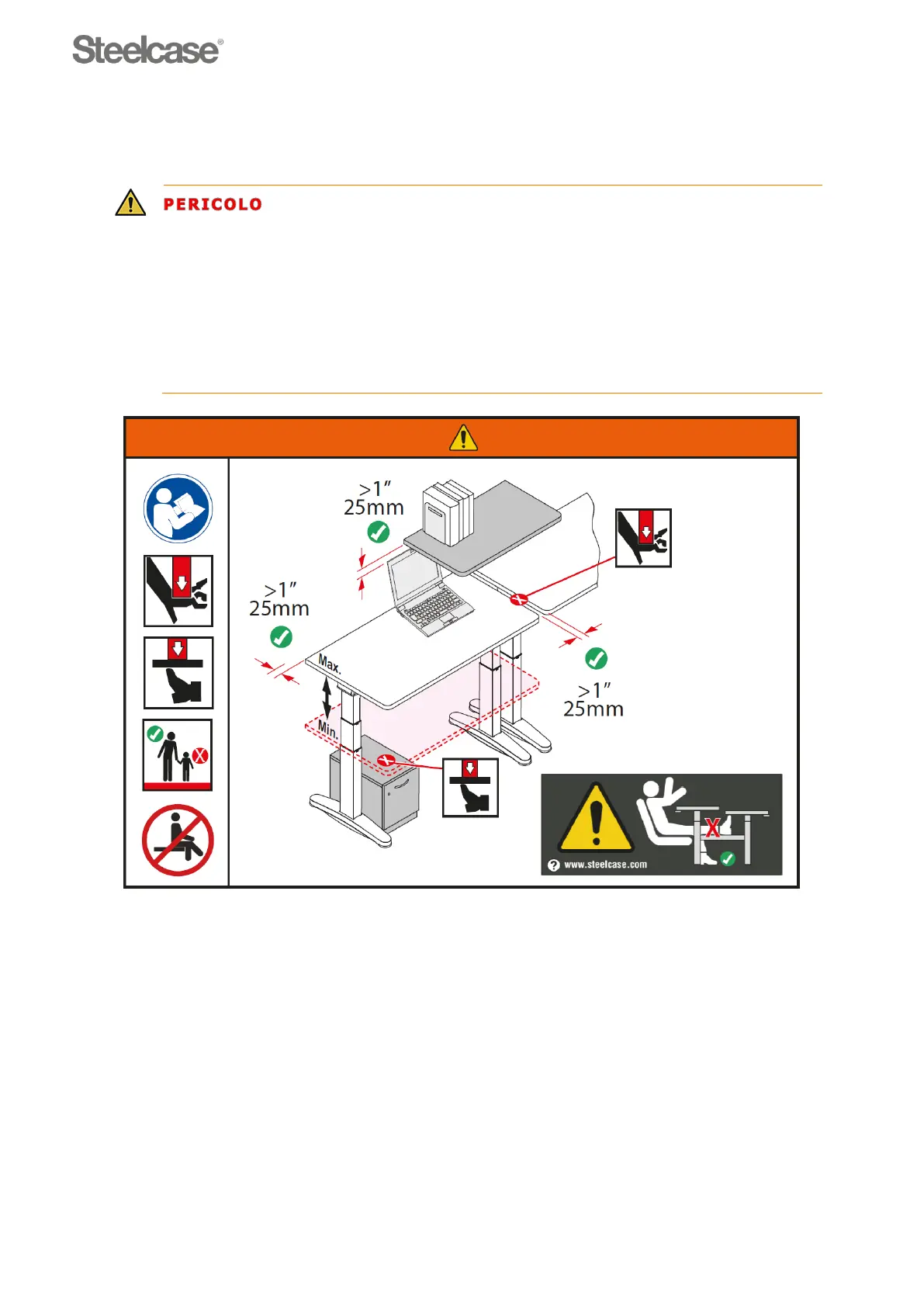Posizionare la scrivania in modo tale che sia garantito sufficiente spazio per i movimenti di