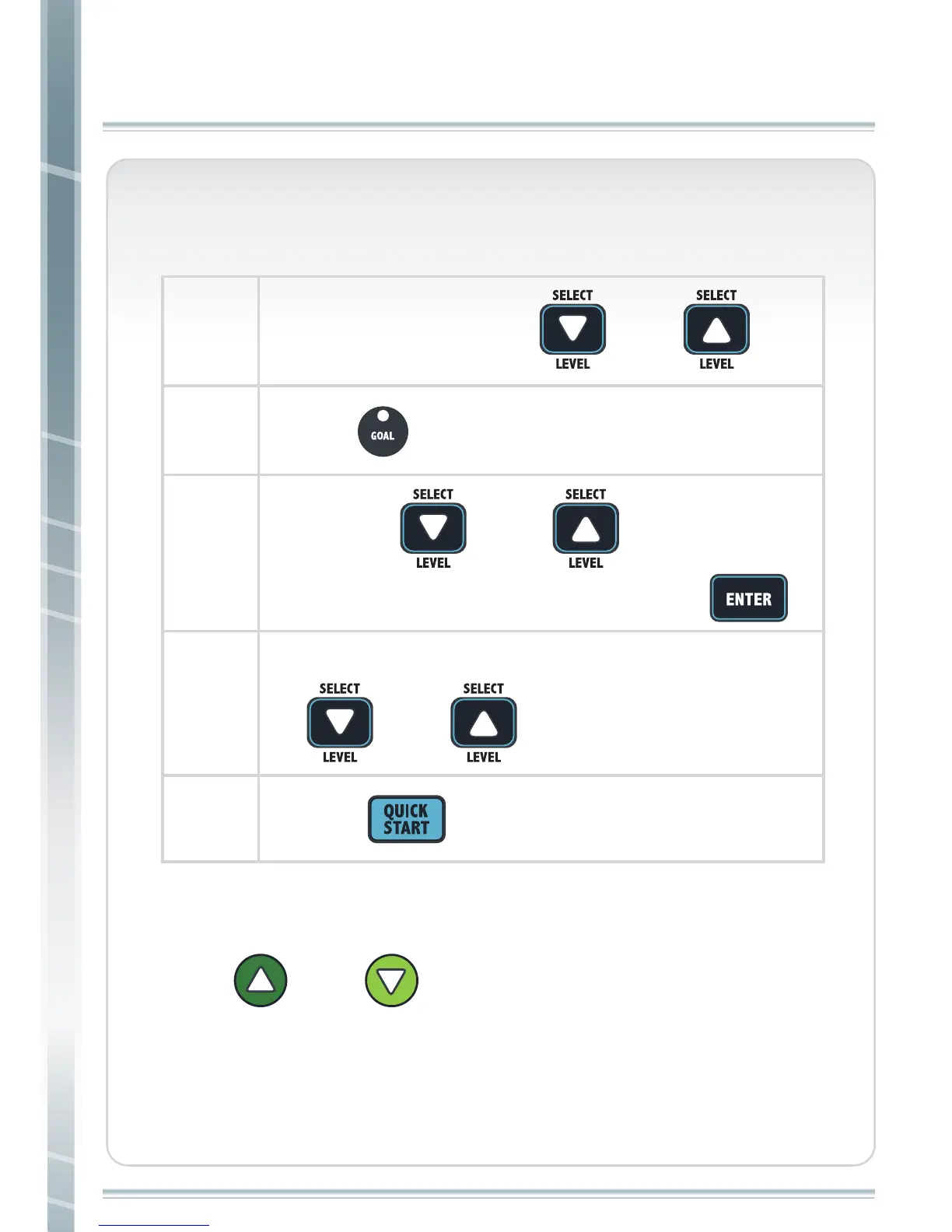 Note: During workout, user can change speed and incline by