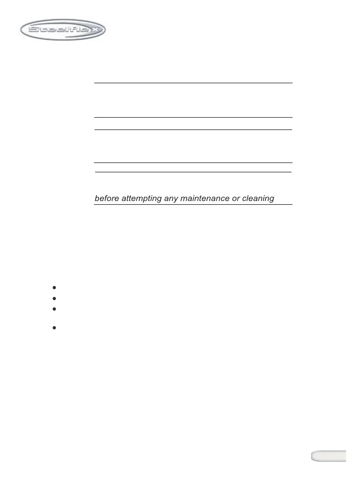 OFF position. Next unplug the powercord from the electrical outlet