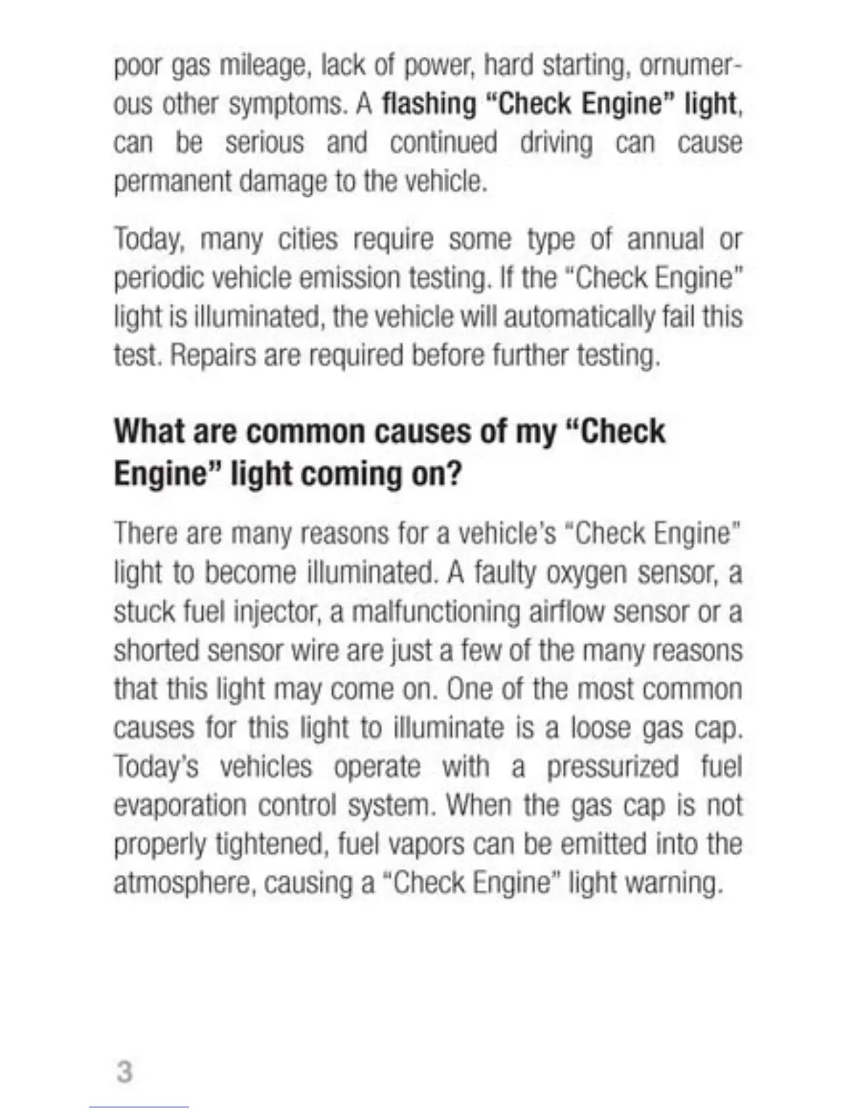 Steelman Codekey - Common Causes of Check Engine Light Coming on