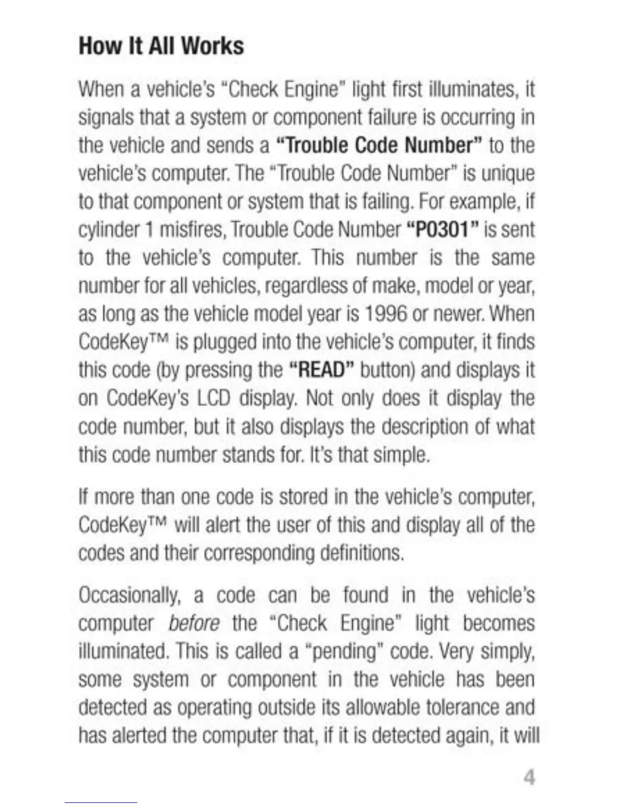 Steelman Codekey - How CodeKey Works; Trouble Code Retrieval; Understanding Pending Codes