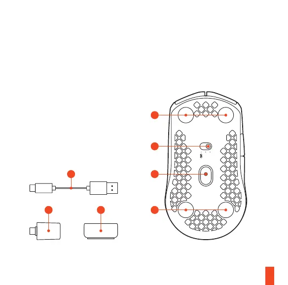 SteelSeries Aerox 3 Wireless - Mouse Components and Connectivity; PTFE Feet; Wireless Mode Switch; TrueMove Air Sensor