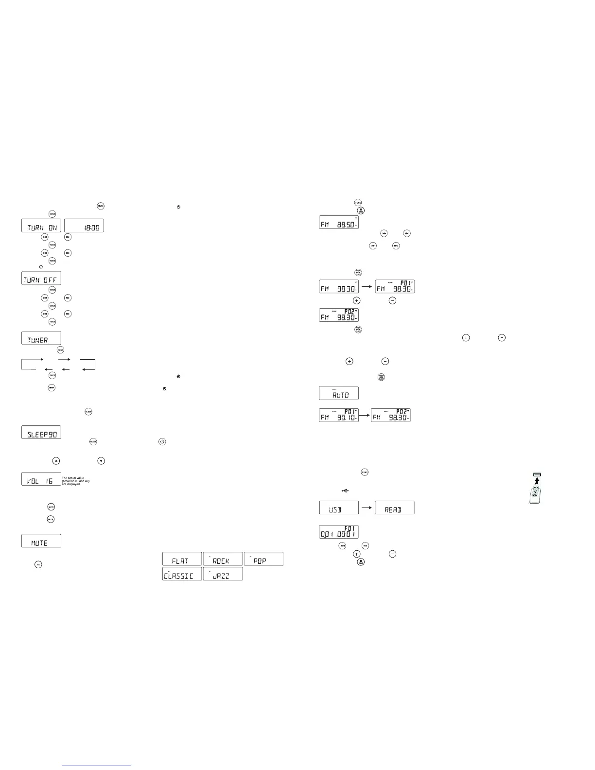 4. Manual Tuning Press FF / or FB / briefly and repeatedly until a station is found.