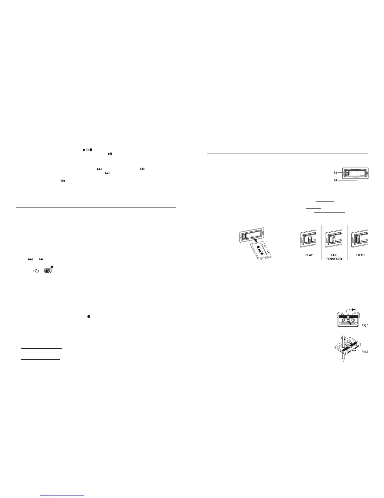 EJECT“ button (33) completely inwards - the cassette tape will